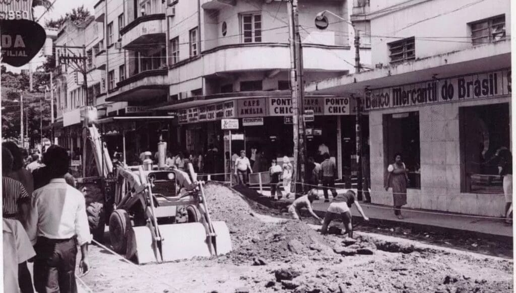 …que o calçadão foi planejado para estimular o convívio social? A ideia era devolver o centro aos pedestres e revitalizar a vida urbana, valorizando o comércio local.