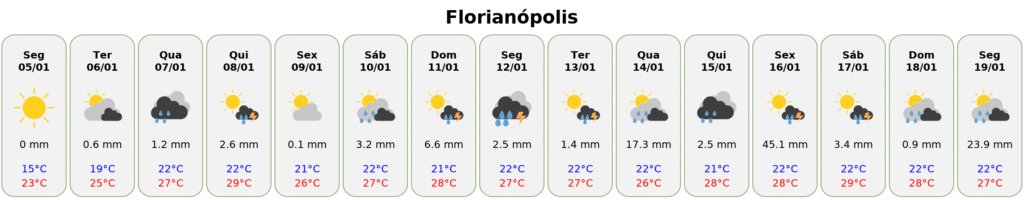 Previsão do tempo em Florianópolis de 5 a 19 de janeiro