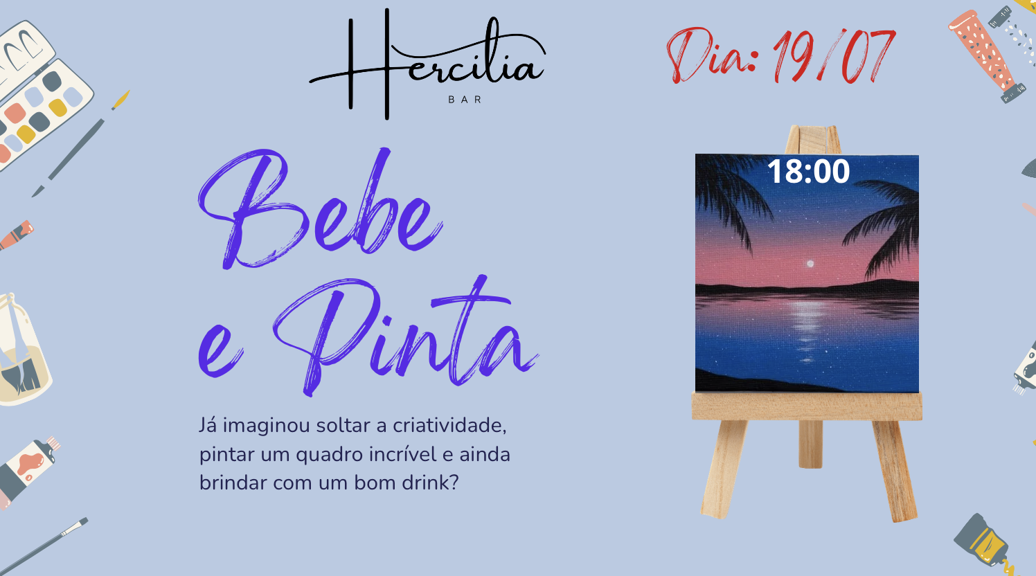 No dia 16/08, a Hercília Bar vira um ateliê cheio de estilo pra mais uma noite de arte, diversão e criatividade!