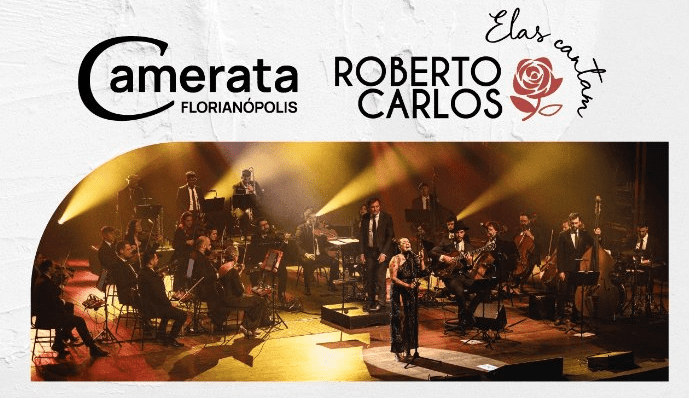 A Camerata Florianópolis apresenta nos dias 26 e 27 de março, às 20h30, o espetáculo “Elas Cantam Roberto Carlos”, no Teatro Ademir Rosa (CIC), em Florianópolis. O concerto integra a programação do mês dedicado às mulheres e reúne três vozes femininas — Ammora Alves, Gaby Scotton e Ruby — interpretando sucessos do cantor e compositor Roberto Carlos, acompanhadas pela orquestra e banda base.