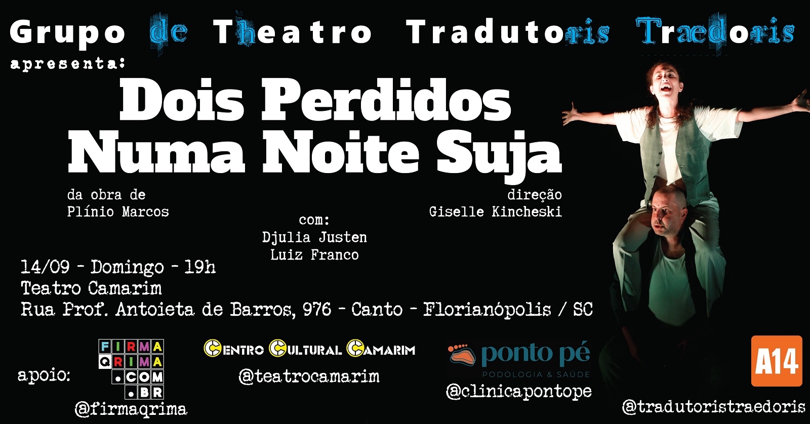 O Grupo de Theatro Tradutoris Traedoris apresentará a peça Dois Perdidos Numa Noite Suja, de Plínio Marcos.