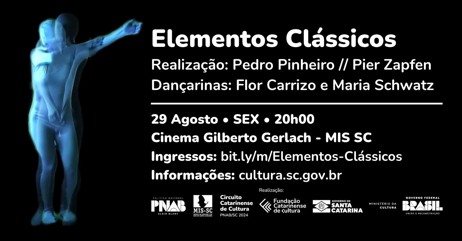 Com realização por Pedro Pinheiro e coreografias das bailarinas Flor Carrizo e Maria Schwartz, esta peça de vídeo experimental foi oficialmente selecionada para o 24FRAME Future Film Fest – que acontecerá em Modena, Itália, de 17 a 19 de outubro de 2025. Em Florianópolis, no Centro Integrado de Cultura, será exibida a versão audiovisual do projeto Elementos Clássicos.
