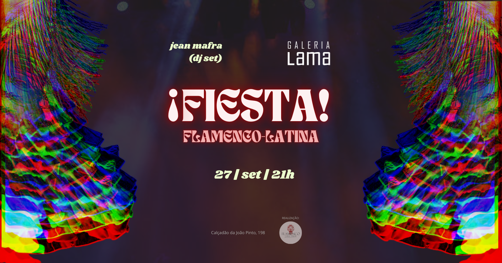 a escola flamenco carol ferrari convida para um ajuntamento na noite do sábado 27 de setembro na galeria lama, no centro de floripa, com o dj jean mafra comandando a pista.