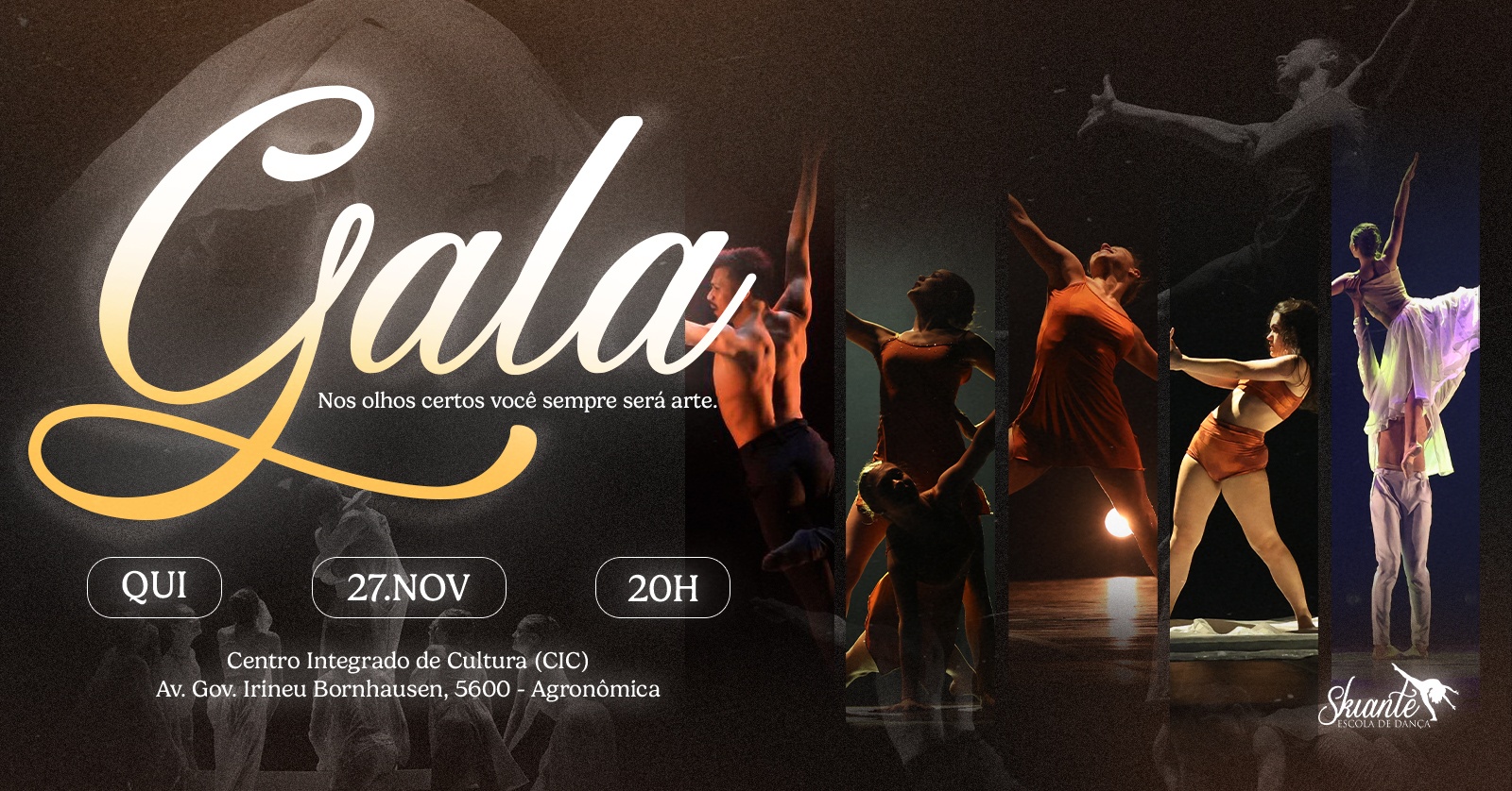 Em 2025, a Skiante Escola de Dança celebra 11 anos de amor e dedicação à arte da dança. Para marcar esta data especial, o espetáculo GALA SKIANTE reúne artistas de diferentes estilos e níveis em uma grande celebração da dança.