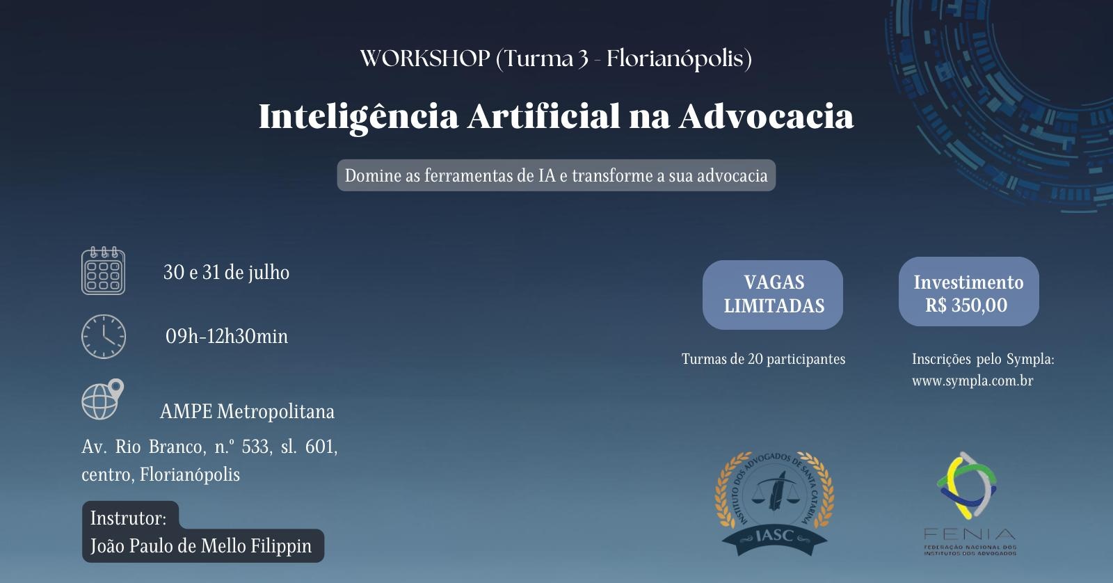 A inteligência artificial já está transformando o Direito e agora é a sua vez de dominar essa nova realidade com segurança, ética e eficiência. O Workshop IA Jurídica é uma imersão prática de 8 horas que vai capacitar você, advogado(a) ou estagiário(a), a usar ferramentas como o ChatGPT e Gemini, entre outras, de forma estratégica em sua atuação profissional.