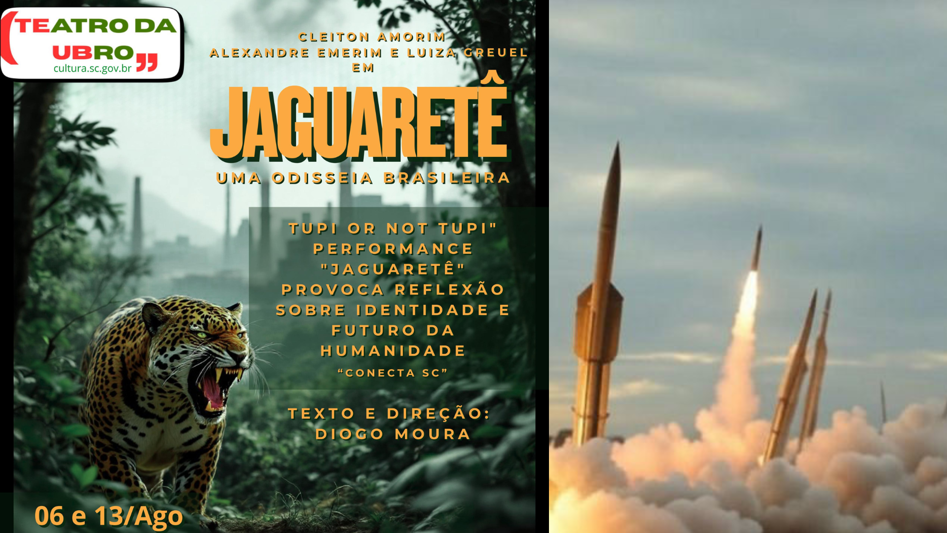 Jaguaretê é uma performance teatral que atraves da narrativa histórica do caboclo, faz surgir aos poucos a história de um Brasil e um povo apagado, até surgir o encontro do caboclo com uma mulher misteriosa, ela carrega lutas e histórias que se entrelaçam com as histórias do caboclo.