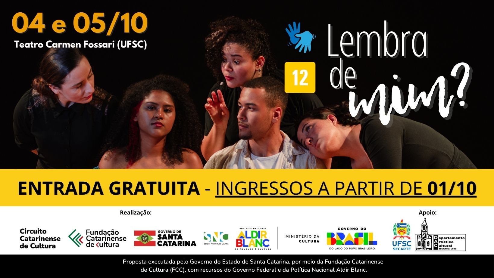 A Fundação Catarinense de Cultura, o Governo do Estado de Santa Catarina e o Ministério da Cultura apresentam: o Espetáculo Teatral “LEMBRA DE MIM?”