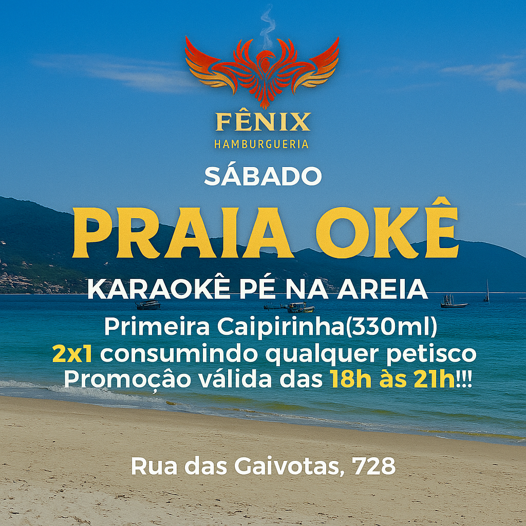 #PraiaOkê #FenixHamburgueria #KaraokeNaPraia #Verão2025 #Caipirinha2x1 #Florianópolis #Ingleses #VemPraFênix #PéNaAreia*
