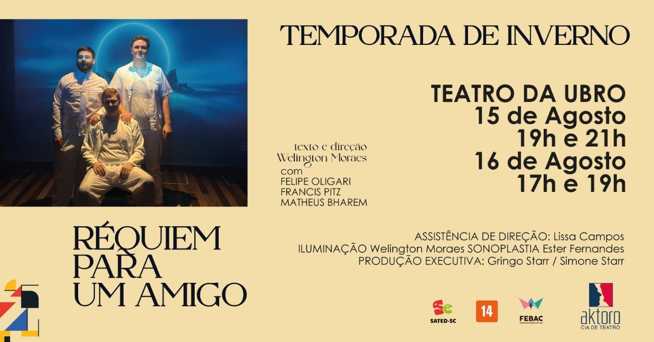 No saguão de um aeroporto, três amigos aguardam a passagem de uma violenta tempestade, a fim de realizar uma última viagem juntos: desejo de Ricardo, o quarto integrante desse antigo círculo de amizade. Porém, uma pergunta paira sobre o ar: onde está Ricardo? A busca pelo quarto amigo, assim como a espera no aeroporto, desencadeiam uma série de acontecimentos que desenterram questões que nunca deviam serem reveladas. Réquiem para um amigo é uma viagem insólita para dentro da memória, espaço de estranhezas e revelações.