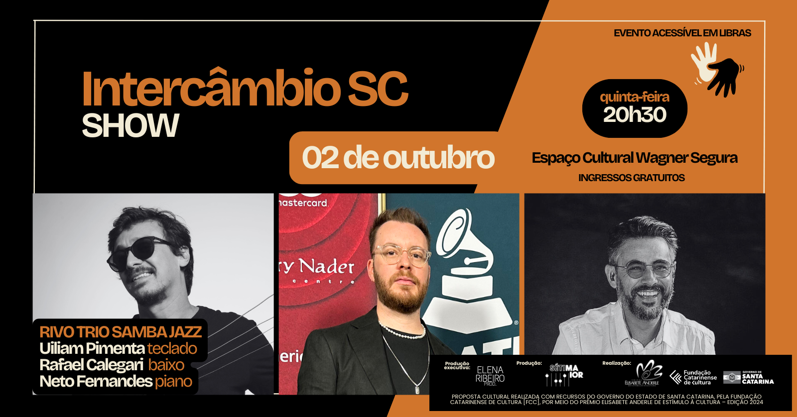 O espetáculo integra a programação do Intercâmbio SC, projeto que conecta artistas de diferentes regiões do país em encontros gratuitos e abertos ao público em Florianópolis/SC.
